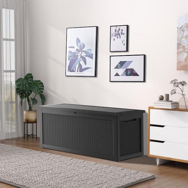 260 Gal. Black Outdoor Resin Waterproof Deck Box with Lockable Lid