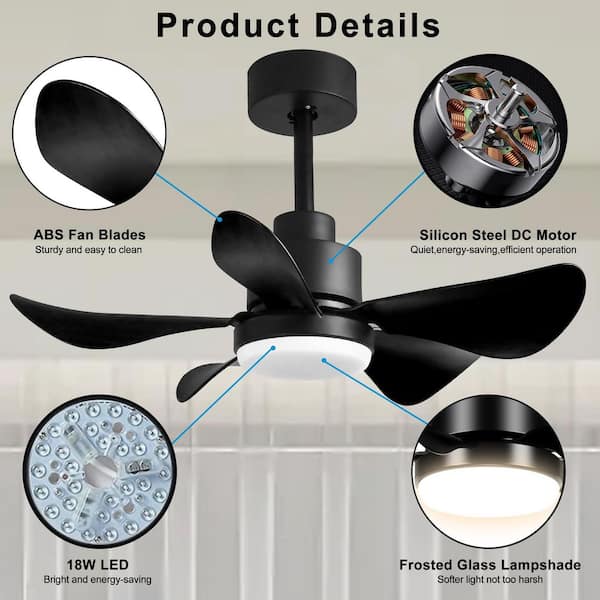 2.33 ft. Black 110-Volt Ceiling Fan with Light remote control , 6 Speeds 3 Colors for Bedroom Kitchen