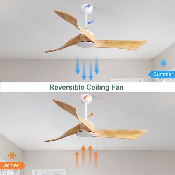 52 In. Modern Ceiling Fan Without Light 6 Speed Remote 3 Solid Wood Blades Reversible DC Motor for Indoor & Outdoor