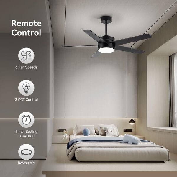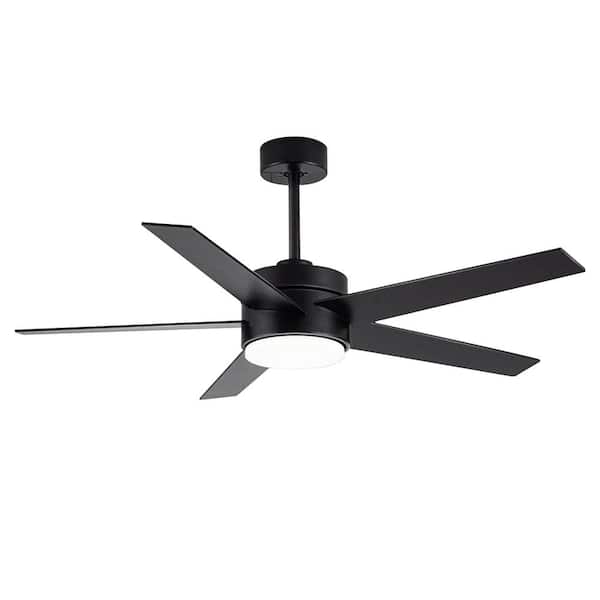 52-in Black Integrated LED Indoor/Outdoor Downrod or Flush Mount Ceiling Fan with Light and Remote