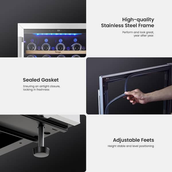 48 in. Double Zone Cellar Cooling Unit 104-Bottles Built- in/Freestanding Wine Cooler Side-by-Side Refrigerator in Black