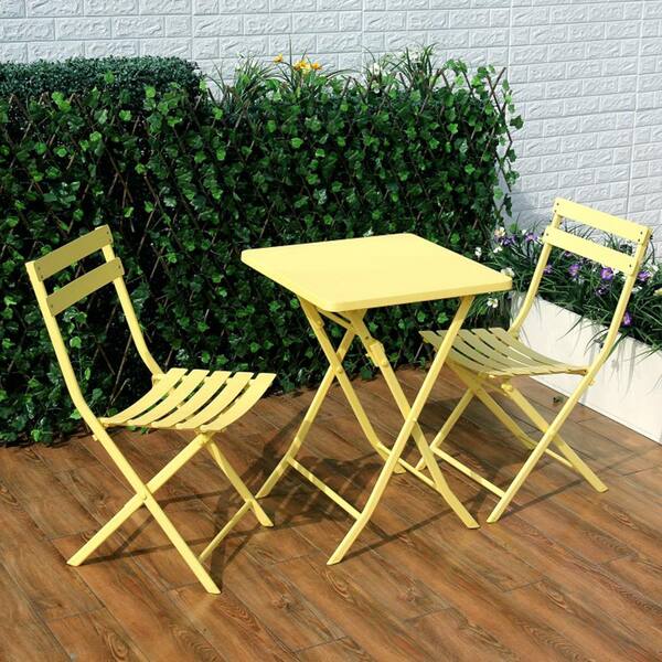 Yellow 3-Piece Metal Outdoor Patio Bistro Set, Foldable Square Table and Chairs, Modern Folding Outdoor Dining Set