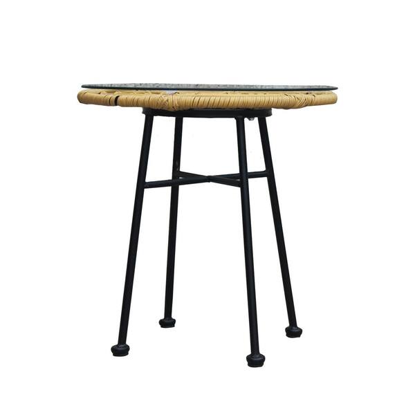 Yellow 3-Piece Wicker Outdoor Bistro Patio Balcony Chair Table Set with Beige Cushion and Tempered Glass Table Top