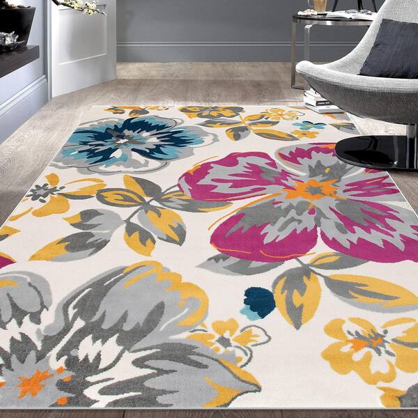 Yellow 5 ft. x 7 ft. Floral Indoor/Outdoor Polypropylene Area Rug