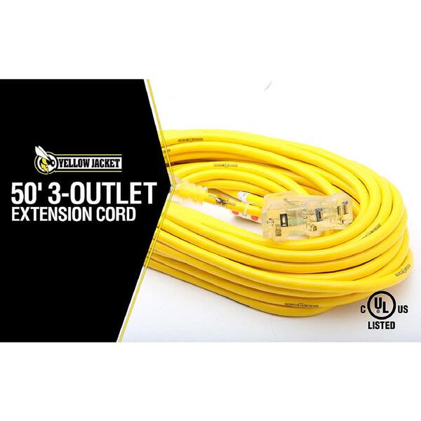 50 ft. 12/3 Gauge Heavy-Duty Indoor/Outdoor SJTW Extension Cord with 3 Outlet Power Block