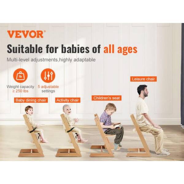 Natural Wooden High Chair for Toddlers, Convertible Adjustable Feeding Chair, Eat and Grow High Chair with Tray