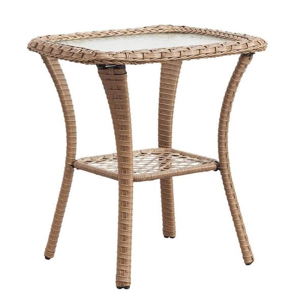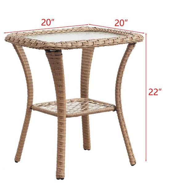 Yellow Square Wicker Outdoor Side Table with Storage