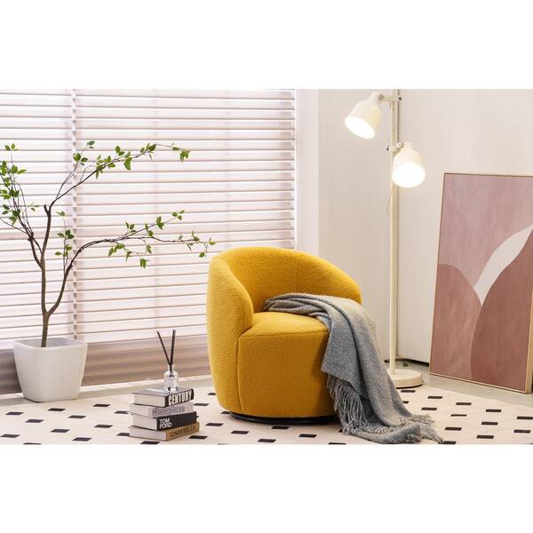 Yellow Teddy Faux Fur Fabric Accent Armchair Modern 360° Swivel Chair With Backrest and Armrest (set of 1)