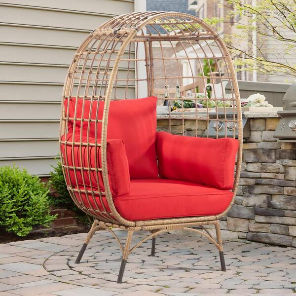Yellow Wicker Outdoor Lounge Chair, Egg Chair with Red Cushion