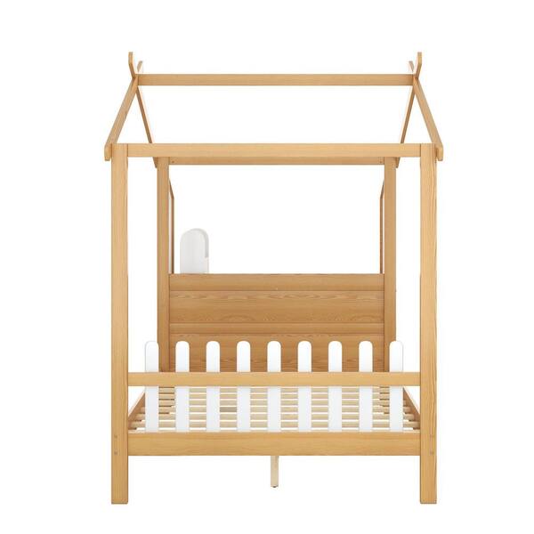 Yellow Wood Frame Full Size Platform Bed with Built-in Desk and Two Drawers, Separate Storage Pen Cas