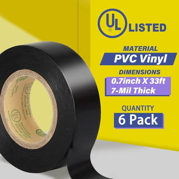0.7 in. x 33 ft. Electrical Tape Black 6-Pack UL Approved Industrial Grade Multipurpose Insulating Tape