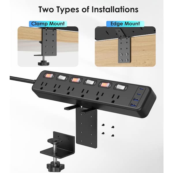 10 ft. 6-Outlet Power Strip Surge Protector with 30-Watt USB C and 6 Individual Switches