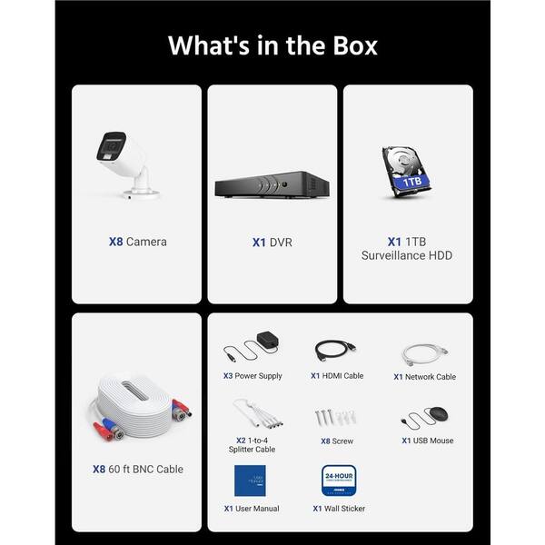 1080p 8 Channel Wired Security Camera System with Audio, Light, Human/Vehicle Detection, Night Vision and 1TB Hard Drive