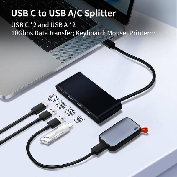 10Gbps Splitter Multiport Adapter Extender in Black 1-Pack