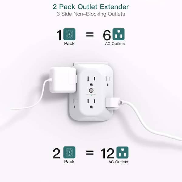 2-Pack Surge Protector Outlet Extender Splitter 6 AC Multi Plug Wall Adapter 1800J for Home Office Dorm Room