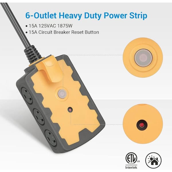 25 ft. Extension Cord 14/3C Gauge, SJTW 6-Outlet Heavy Duty Power Strip with 15Amp Circuit Breaker
