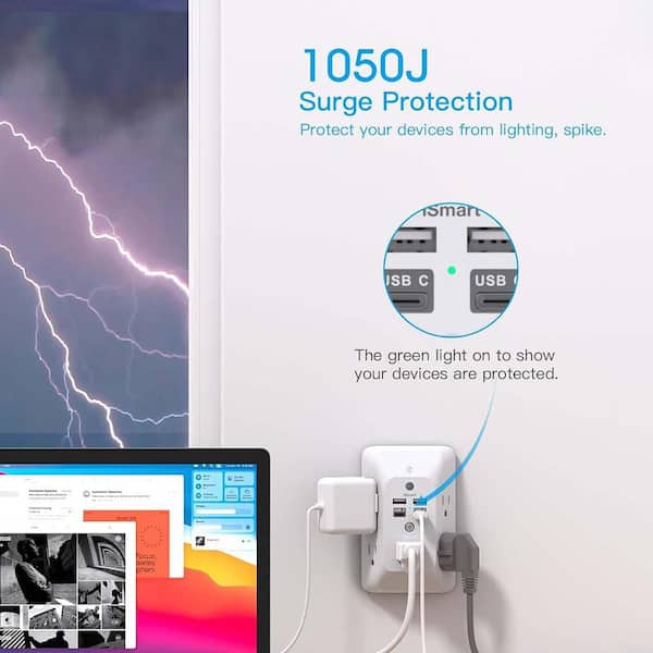 4-Outlet Extender with 2 USB-A, 2 USB-C Ports Surge Protector with Night Light for Bathroom Kitchen Camper Dorm Room
