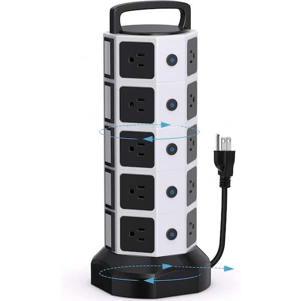 6.5 ft. Cord 20-Outlets Surge Protector Power Strip Tower with 4 USB-A and 2 USB-C Ports 1050 Joules in Black/White