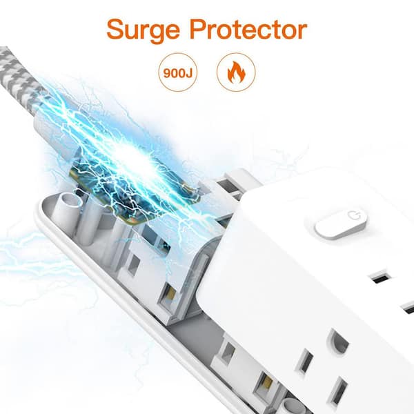 6-Outlet Power Strip Surge Protector with 3 USB Ports 1 USB C Outlet 3-Side Outlet Extender