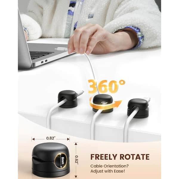 6-Pack Rotatable Cord Organizer Spring Cable Clips Desk Phone Charger Cable Management Adhesive Wire Holder Black