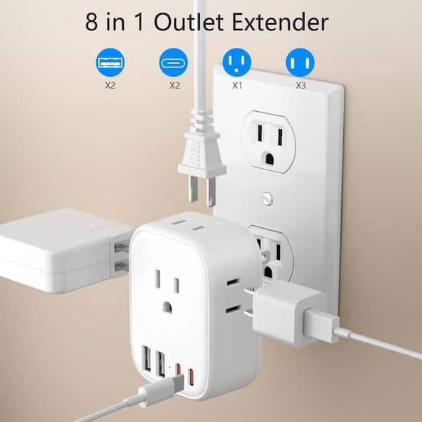 8-Outlet Extender with 2 USB-A Ports 2 USB-C Ports Wall Tap Splitter for Home Office Travel Cruise Essentials