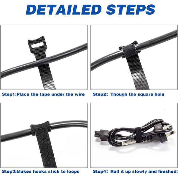 80PCS Reusable Cable Ties Black Adjustable 6-Inch Cord Organizer Hook Loop Cable Management for Home Office