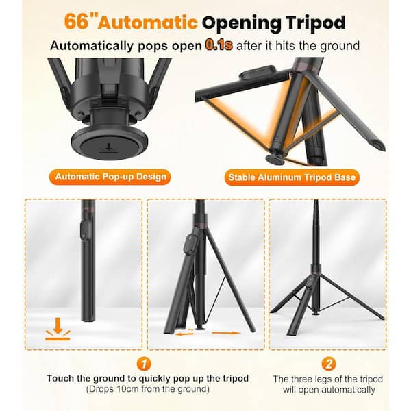 Automatic Phone Tripod with Magnetic Rechargable Remote, Selfie Stick 360° Vertical and Horizontal Rotatable (Black)