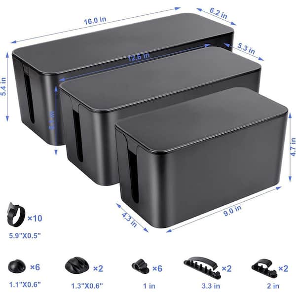 Cable Organizer Box Set of 3, 1.33 ft. Power Cover Cord Holder Surge Protector for Desk (Black)