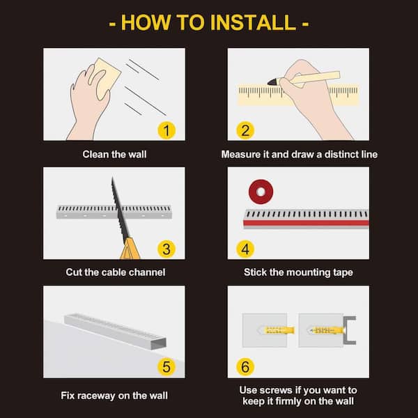 Cable Raceway Kit 10.25ft Cable Management Cord Track Under Desk Wire Organizer to Hide Cables and Wires in White