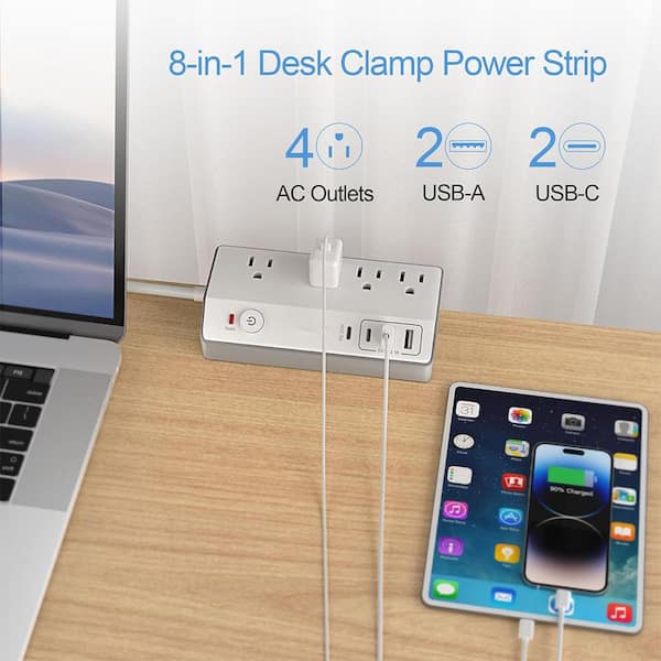 Desk Clamp Power Strip with USB C, JXGUCAT PD 20-Watt Fast Charging Power Station, Removable Desk Clamp