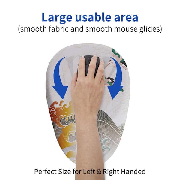 Japanese Wave White Ergonomic Mouse Pad with Wrist Support, Comfortable Entire Memory Foam, Wrist Pain Relief