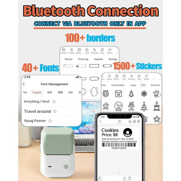 Label Maker, 2 in. Barcode Printer, Portable Sticker Maker Machine in Green