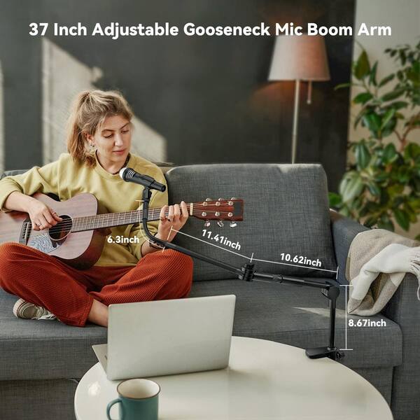 Microphone Stand Adjustable Gooseneck Mic Boom Arm in Black (1-Pack)