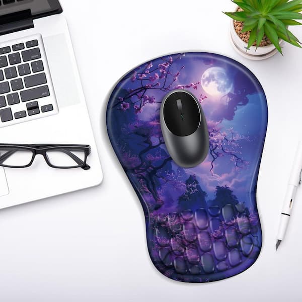 Moonlit Night Purple Mouse Pad with Wrist Rest Support and Non-Slip PU Base for Pain Relief, Computer, Laptop, Office