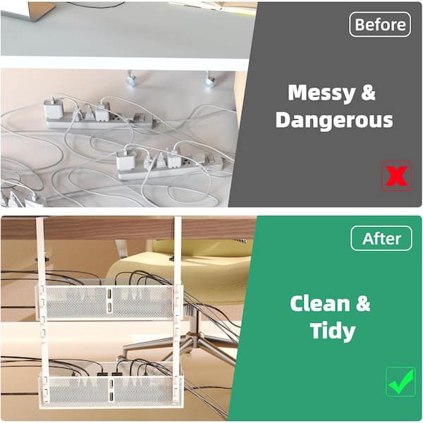Multi-Model Under Desk 1.25 ft. Cable Management Metal Under Desk Wire Management Clamp Mount Under Table Desk (White)