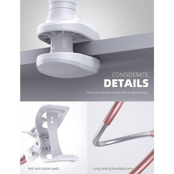 Phone Holder Gooseneck Mount Flexible Lazy Long Arm Headboard Bedside for Desk Overhead Mount Stand Rose Gold