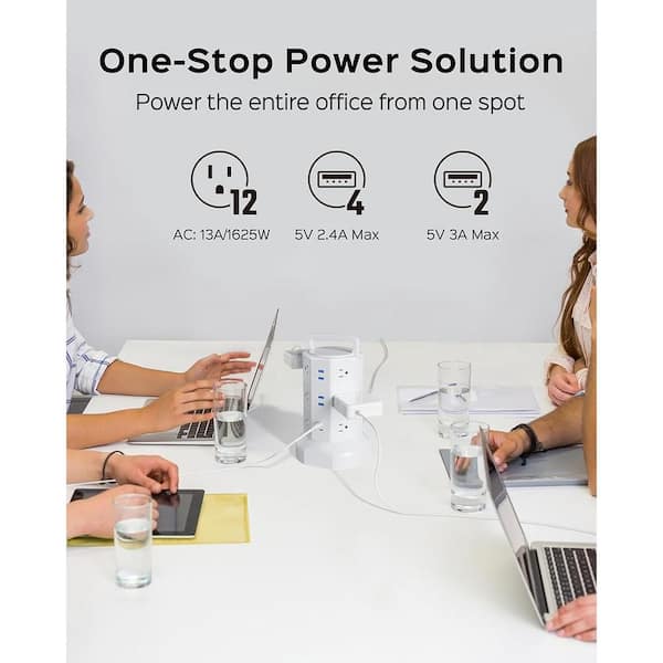 Power Strip Tower Surge Protector 6.5 ft. Extension Cord 12 Outlets 6 USB Cord with Multiple Outlet in White