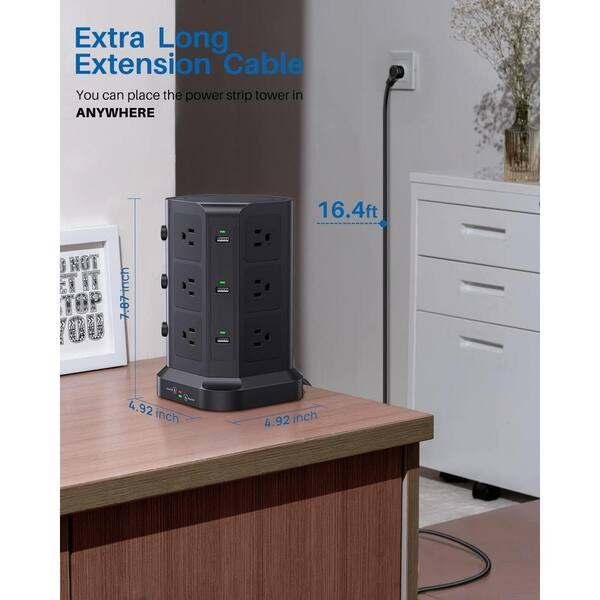 Surge Protector Power Strip Tower 16.4 FT Extra Long Cord Flat Plug 12 Widely Multiple Outlets 6 USB Charging Station