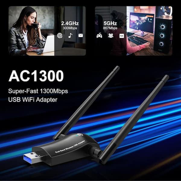 USB Wireless WiFi Adapter Dongle for Desktop, PC with High Gain Dual Antennas, Dual Band 2. 4G, 5G in Black