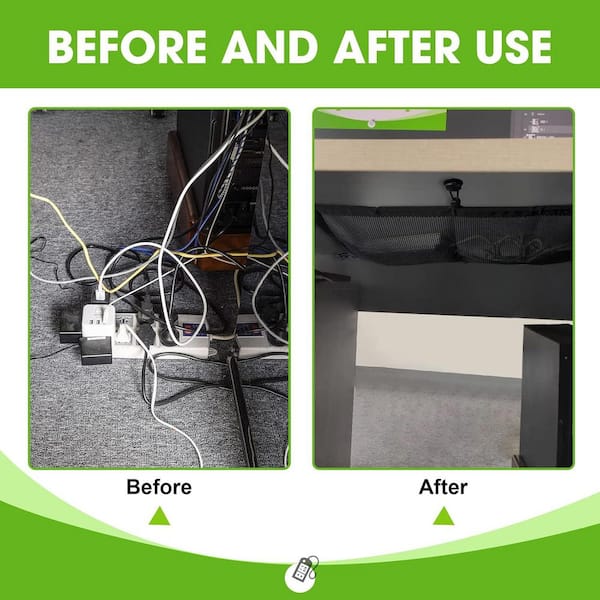 Under Desk Cable Management Net in Black Privacy Mesh Flexible Wire Organizer, Office, Standing Desk