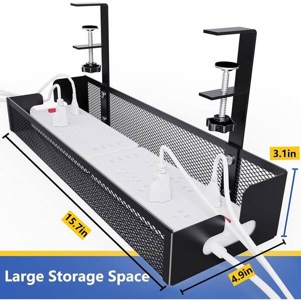 Under Desk Cable Management Tray No Drill Mesh Wire Organizer Rack for Office Home Black 1 Pack