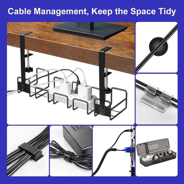 Under Desk Cable Management Tray No Drill Wire Organizer for Office Computer Large 6 Accessories Set in Black