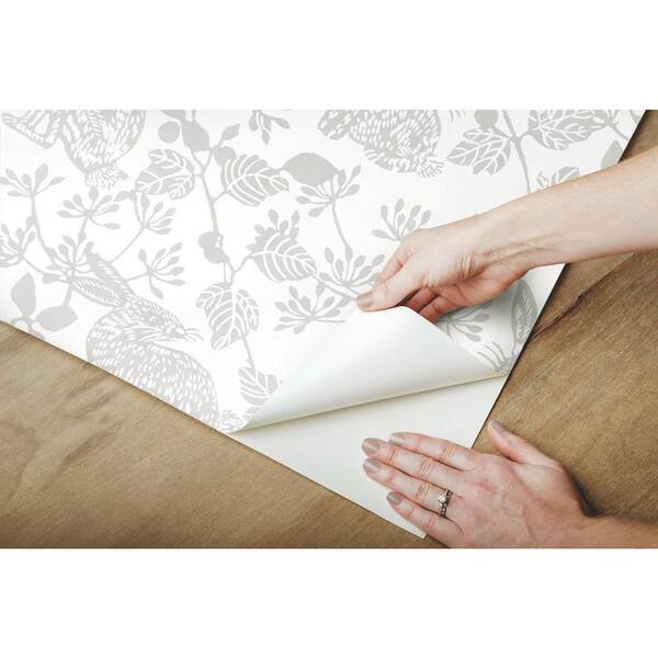 45 sq ft Botanical Bunnies Grey Peel and Stick Non-woven Wallpaper
