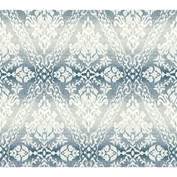 60.75 sq ft Navy Tudor Diamond Damask Pre-Pasted Wallpaper