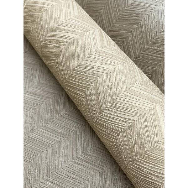 Beige Taupe Raised Chevron and Herringbone Vinyl Non-Pasted Wallpaper Roll