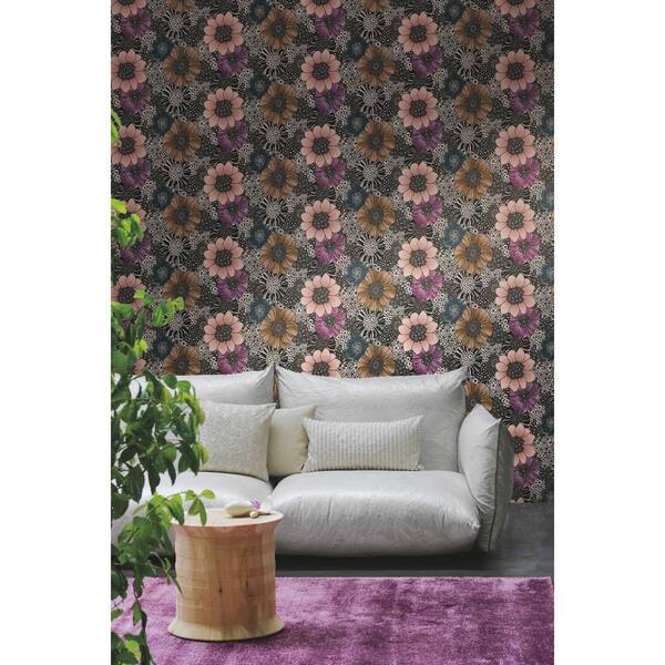 Black Anemones Unpasted Paper Wallpaper Matte, (20.5 in. x 33 ft.)