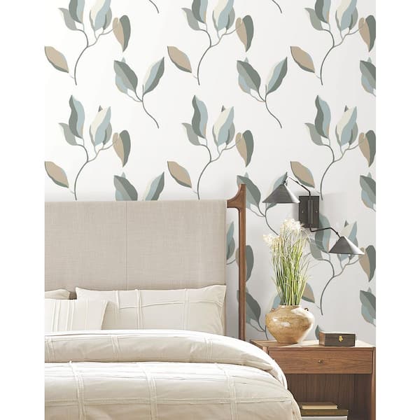 Blue Brushwork Branches Mineral and Olive Wallpaper