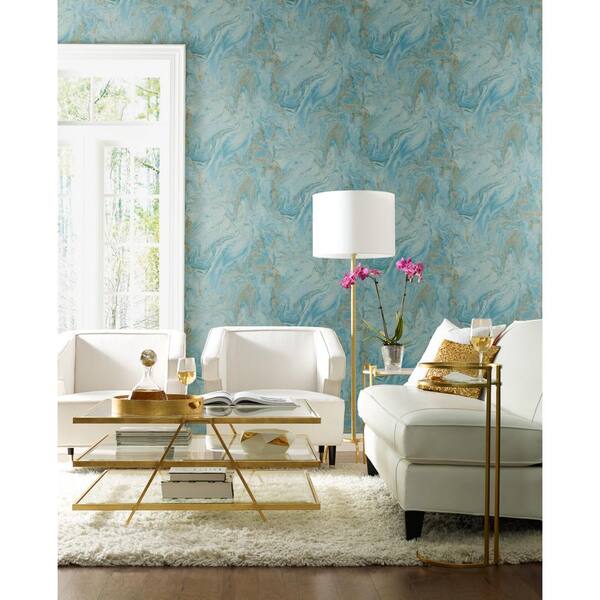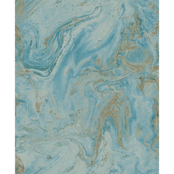Bright Blue and Gold Metallic Oil and Marble Paper Unpasted Wallpaper (21 in. x 33 ft.)