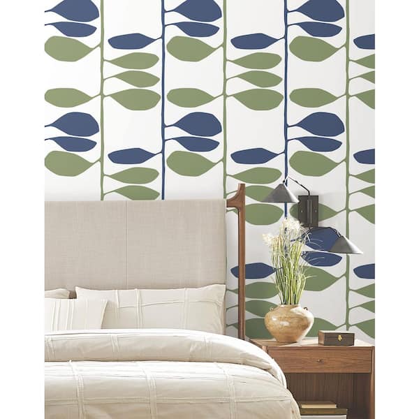 Green Sculpted Vines Alpine and Ultramarine Wallpaper