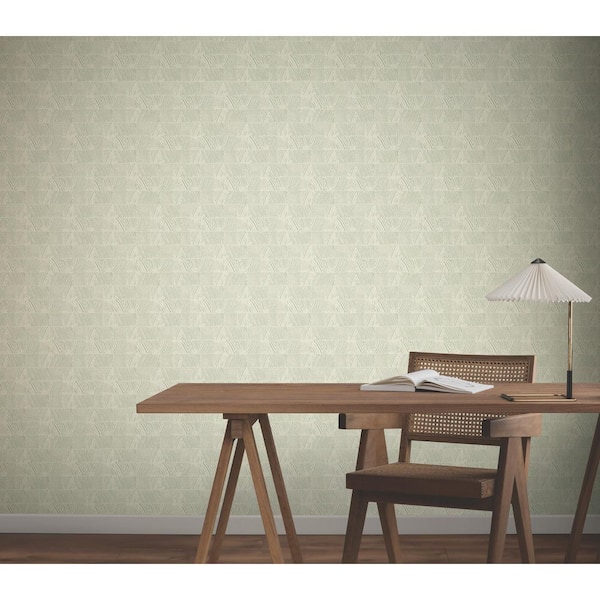Green Woodcut Green and Stone Non-Pasted Non-Woven Matte Wallpaper